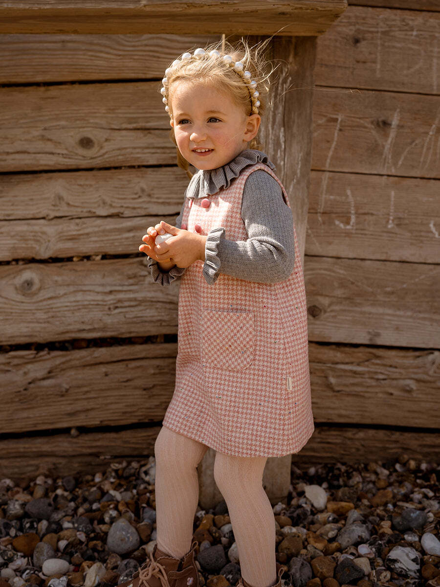 Last1 【即納】HAPPYOLOGY Mia Tweed Overall Dress Pink Houndstooth